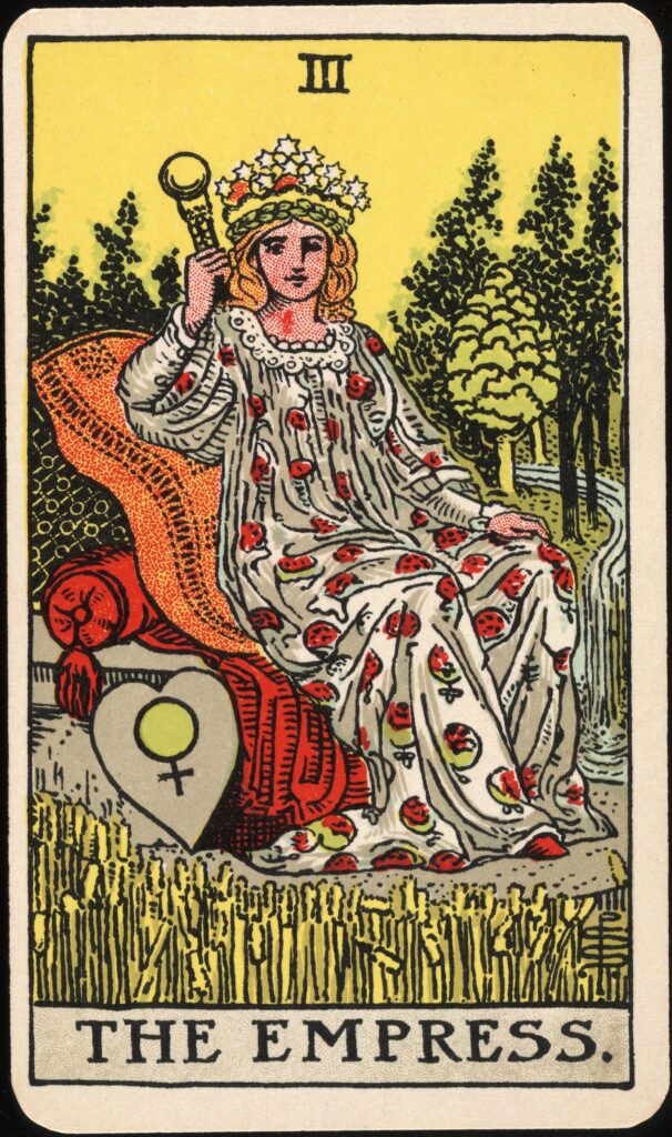 The Empress is one of the most radiant figures in the tarot. She is often depicted surrounded by fields of wheat, flowing water, and lush greenery, crowned with stars. She represents creativity, fertility, and the beauty of life expressed in full bloom. Unlike cards that rely on power or status, the Empress speaks of beauty that flows naturally — a richness that cannot be forced.